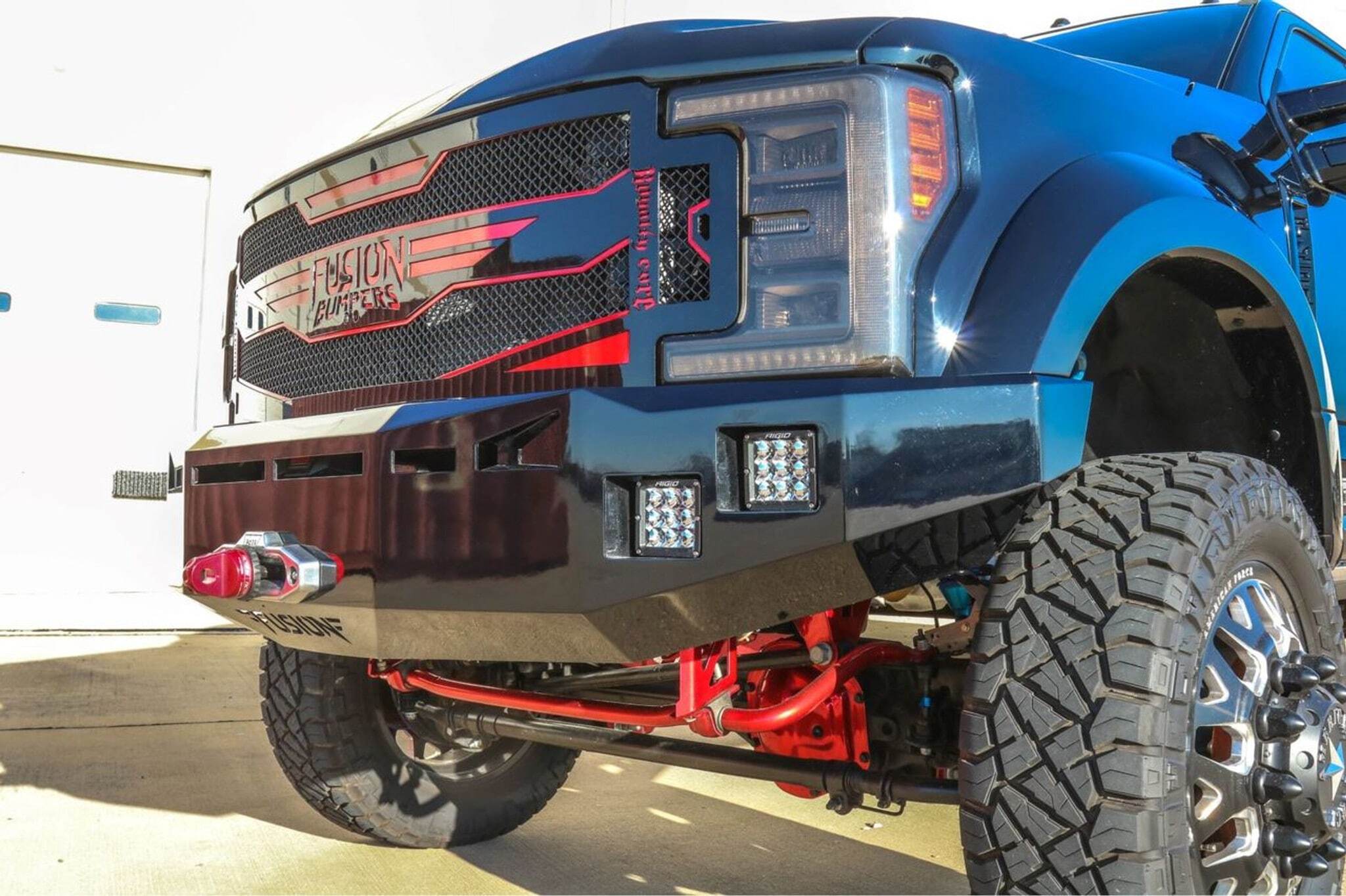 Fusion Bumpers are filled with Rigid Industries Dually XL's and a Warn Zeon 12S winch.